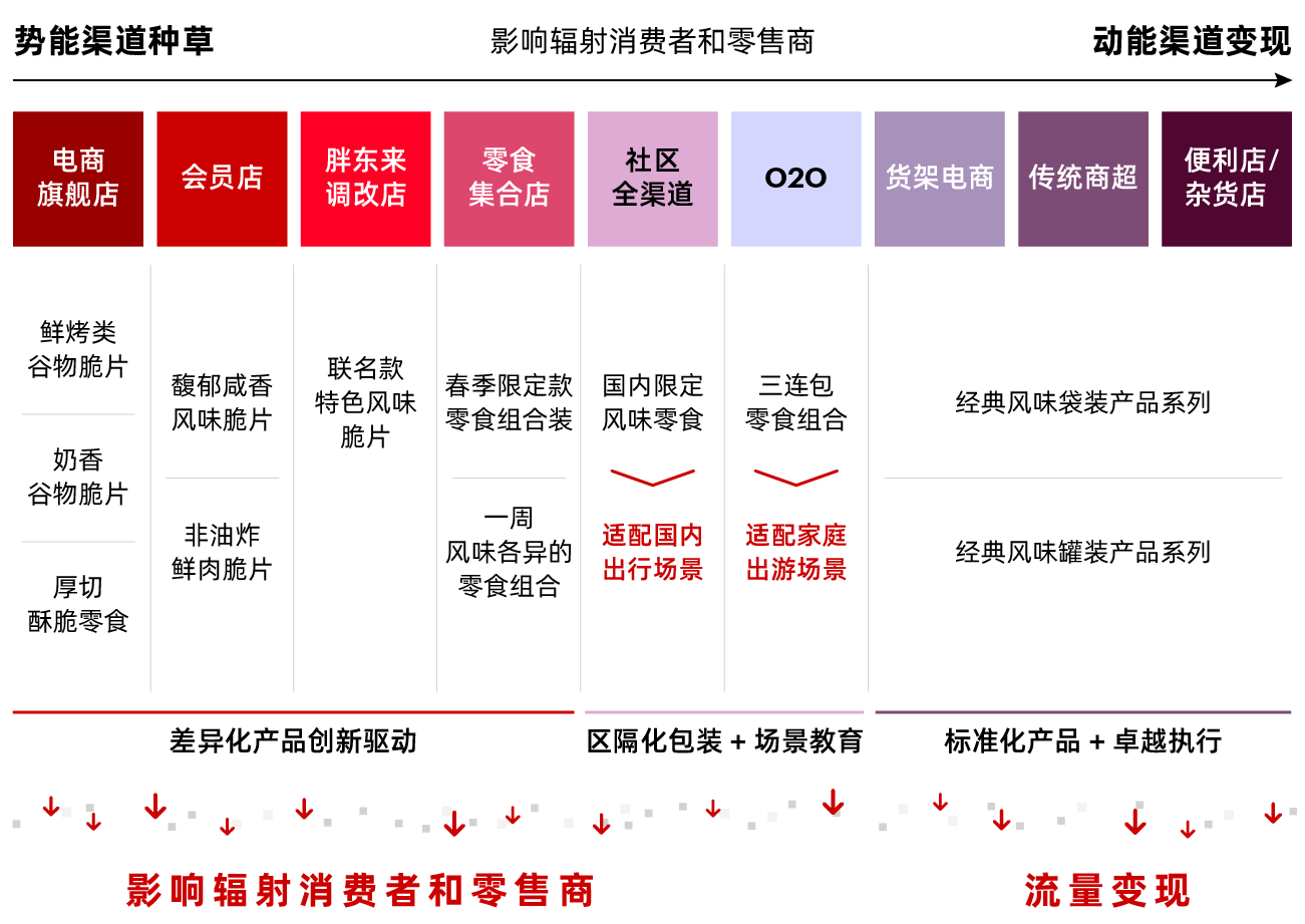 某零食品牌根据渠道角色及货品维度确立货品矩阵